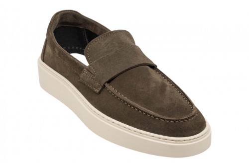BLU BARRET mocassino ADAM-13476.5 OTTERPROOF REV OLIVA. Mocassino in suede con elastici sulla fascetta per maggior comfort di calzata. La lavorazione e la suola rendono questo capo flessibilissimo e piacevole da indossare. Adatto a look casual e non solo.