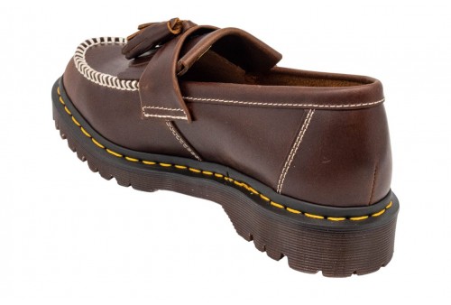 DR MARTENS Mocassini Adrian con nappe e cuciture. Mocassini di ispirazione classica rivisitati con l'inconfondibile carattere Dr. Martens. Il modello Adrian Ben Orleans coniuga una silhouette elegante con un carattere grintoso, ideale per chi cerca calzature versatili e di carattere. Realizzate in pregiata pelle liscia, queste scarpe si distinguono per il design a mocassino con dettaglio a mascherina sul collo del piede e cuciture a vista che ne rafforzano l'estetica iconica. Presentano la suola distintiva del brand, resistente e dall'eccellente grip, fissata con le caratteristiche cuciture che garantiscono resistenza e comfort. Perfetti per impreziosire i look casual o aggiungere un tocco contemporaneo a quelli più formali, questi mocassini sono una scelta sicura per l'uso quotidiano.