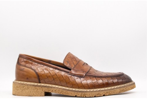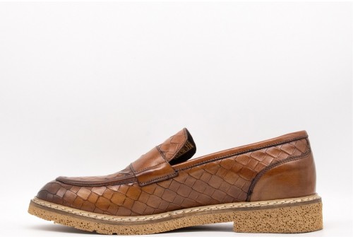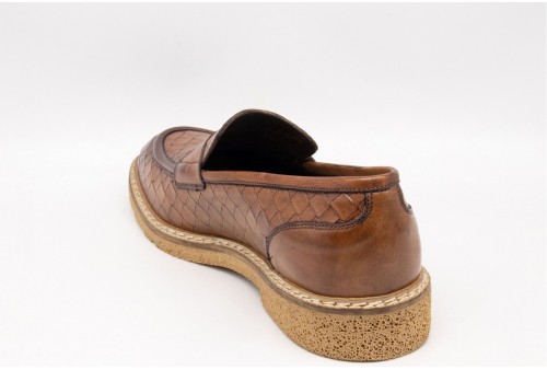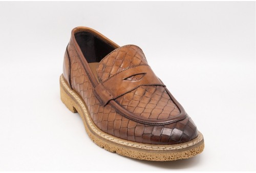 EXTON Mocassini Uomo Pelle Di Vitello. L'icona dell’eleganza artigianale. Questo mocassino in pelle di vitello con stampa intreccio è una dichiarazione di stile sofisticato e distintivo. Perfetto per chi cerca un look ricercato senza rinunciare alla comodità, grazie alla fodera in pelle che garantisce traspirabilità e alla suola in rubrex che offre leggerezza e resistenza.