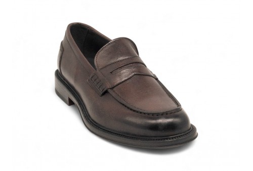 EXTON MOCASSINO CON MASCHERINA. Mocassino con mascherina realizzato in pelle di vitello color castagno. Punta tonda. Cuciture tono su tono sulla tomaia. COLORE: CASTAGNO