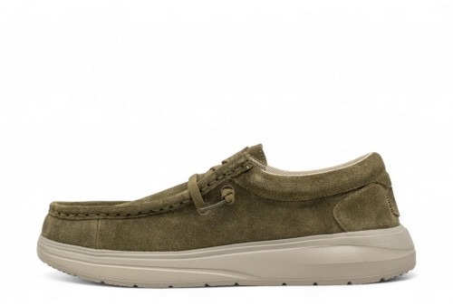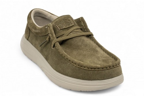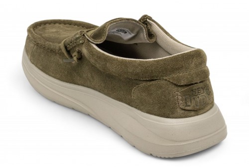 HEY DUDE Wally comf suede. Più comfort. Più imbottitura. Elevato comfort a 360° per qualsiasi outfit. Intersuola extra morbida e tomaia in camoscio squisitamente elegante. COLORE: DARK OLIVE