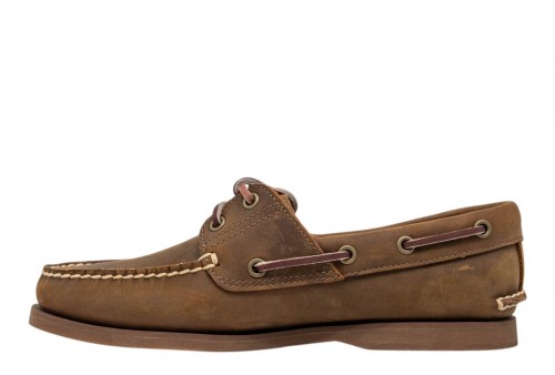 TIMBERLAND UOMO TB01001R214 CLASSIC BOAT BROWN. Scarpa da Barca Classic 2-Eye da Uomo in marrone. Realizzata in pelle Premium Timberland® Leather cucita a mano per unire estetica e maestria artigianale, la Scarpa da Barca Classic 2-Eye da Uomo presenta un sistema di allacciatura a 360° e una suola in gomma scanalata non-marking, per un'aderenza ottimale che non lascia segni.