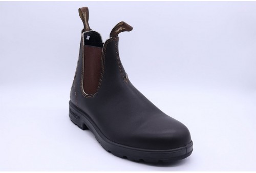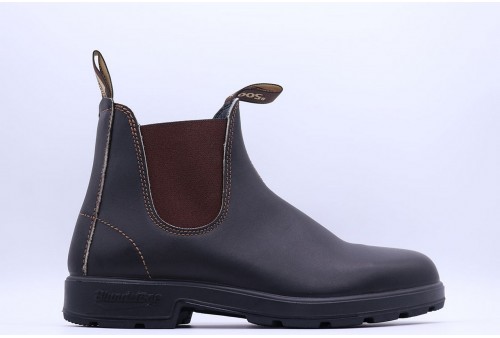BLUNDSTONE Chelsea 232. Iiconico stivaletto modello Blundstone #500 in stile Chelsea. Realizzato in pelle premium marrone, impermeabile ed estremamente resistente, con classici elastici laterali in tono. Tomaia liscia con impunture decorative e linguetta frontale e posteriore per aiutarvi nella calzata. Suola in gomma dentata con tallone rialzato e logato dall’ottimo grip. Una scarpa leggera e comoda della serie Originals dal look classico e grintoso, per i vostri outfit di tutti i giorni.