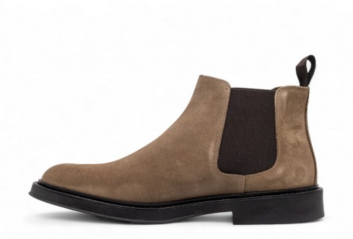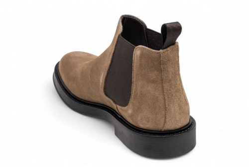 DINO DRAGHI BEATLES IN SUEDE. Stivaletto modello beatles realizzato in pelle scamosciata con inserti elastici laterali. Loop sul retro. COLORE: marsh