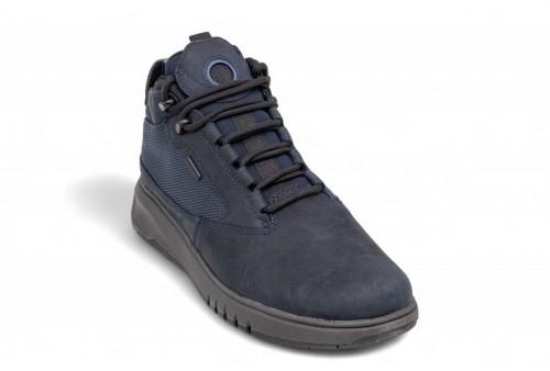 GEOX stivaletto aerantis 4x4 abx. Stivaletto uomo confortevole ed extra traspirante, che offre massima impermeabilità anche sotto la pioggia grazie alla sua ventilazione dinamica. In questa variante blu navy, presenta una tomaia realizzata in materiale effetto pelle ingrassata e tessuto con dettagli tecnici ispirati all'outdoor. Aerantis™ 4X4 ABX è l'alleato perfetto per affrontare con sicurezza le attività quotidiane anche con il maltempo.COLORE NAVY