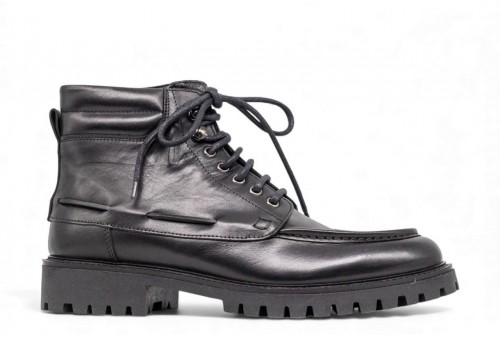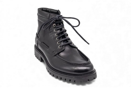 ROGAL'S ANFIBIO KYOTO. Anfibio realizzato in pelle con cuciture tono su tono. Colletto imbottito. Fondo in gomma dentellato. COLORE: nero