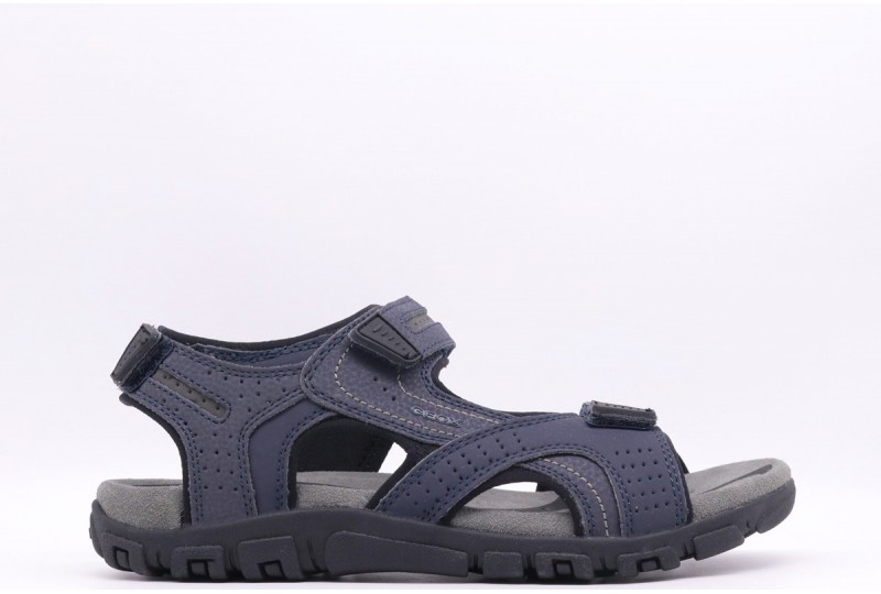 GEOX Sandalo Strada, pratico e traspirante, dallo stile versatile. Il carattere funzionale di Strada si esprime nel design aperto sulla punta e sul tallone e nei tre pratici strap regolabili. Realizzato in una versatile tonalità con dettagli scuri, questo modello accompagna con grande comfort le giornate dinamiche di chi lo indossa.COLORE: NAVY/GREY Tomaia: Tessuto Fodera: Tessuto Fondo: Gomma Sottopiede: Pelle Altezza suola: 3,5 cm Chiusura: con Strappi Collezione: Primavera/Estate Codice: UU8224D0BC50C4422