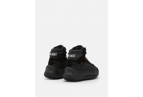 MOON BOOT SNEAKER MOON247 XLACE MID NERO. La sneaker Moon247 reinterpreta la tradizione dell’era spaziale in chiave street-style. Progettata con una silhouette ad altezza caviglia ed ispirata alle tendenze utility, mantiene le caratteristiche tipiche dell’originale: proporzioni voluminose, suola profilata e lacci inconfondibili, per un look audace pensato per distinguersi, ovunque ti porti il viaggio.