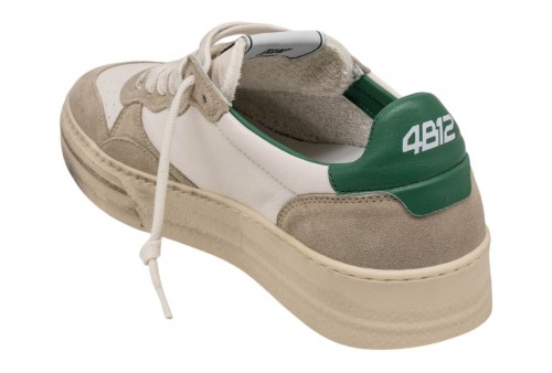 4B12 uomo HYPER-U3004 WHITE/PINE. Sneakers 4B12 Uomo In Pelle Bianca E Dettagli verde. Il modello HYPER combina stile e versatilità grazie ad un design moderno, realizzato con pelle morbida e resistente. Queste sneakers offrono confort e supporto grazie alla suola in gomma flessibile e antiscivolo. Il loro look minimal le rende perfette per completare qualsiasi outfit casual o sportivo.