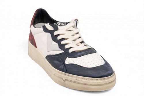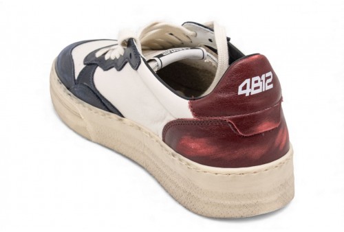 4B12 UOMO SNEAKERS HYPER. Sneakers da uomo modello Hyper. Realizzata in pelle bianca con dettagli in pelle a contrasto in blu e bordeaux. Top e logo laterale in pelle COLORE: BLU/bordeaux