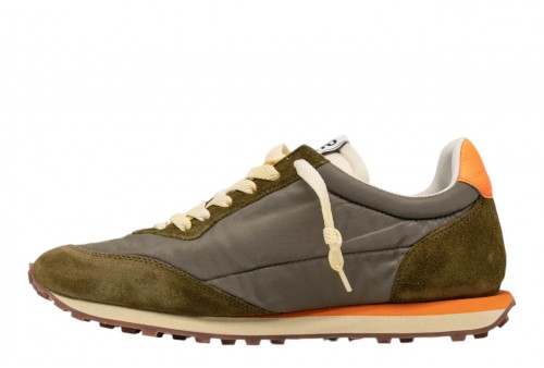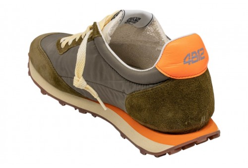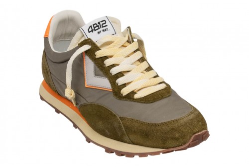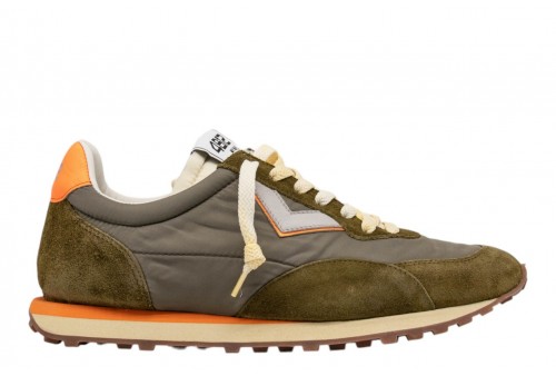 4B12 uomo VINTAGERUNU12009 military. Sneakers 4B12 Uomo In tessuto verde militare con dettagli in pelle scamosciata. Spoiler in pelle arancioLa Vintage Run è progettata per chi cerca una scarpa estremamente leggera e confortevole, perfetta per affrontare le giornate dinamiche in città senza rinunciare a un look curato. La struttura multimateriale e la silhouette affusolata richiamano le grandi icone dell'atletica degli anni '70 e '80.