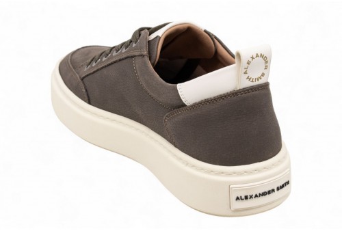 ALEXANDER SMITH Bond uomo NABUK. La nuova Bond di Alexander Smith, nasce per reinterpretare un modello istituzionale donandogli più carattere: la selezione di materiali personalizzati come gli occhielli logati e la suola importante sono gli elementi chiave di questo modello, in questa variante con tomaia in nabuk marrone e dettagli in pelle bianca.Logo a lato e nel loop sul retro. Soletta interna removibile .COLORE: DARK grey