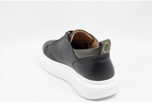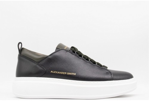 ALEXANDER SMITH WEMBLEY MAN BLACK MILATARY. Il riferimento al famoso stadio inglese è chiaro: sportività ed eleganza si fondono per dare vita a questo modello. Le Wembley rappresentano l’equilibrio tra comodità, stile e sobrietà, ai quali si aggiunge modernità grazie ai dettagli unici che fanno la differenza, in questa variante in pelle liscia in nero con dettagli verde militare.