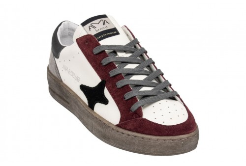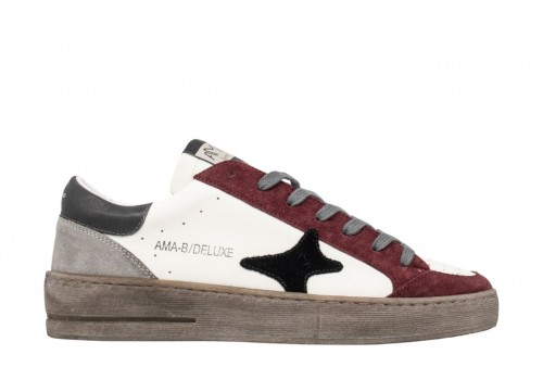 AMA BRAND 4351 SLAM . Sneakers uomo caratterizzate da tomaia in pelle con inserti in pelle scamosciata bordeaux e grigio .Spoiler in pelle blu con logo. Linguetta con label logata. Suola in gomma.