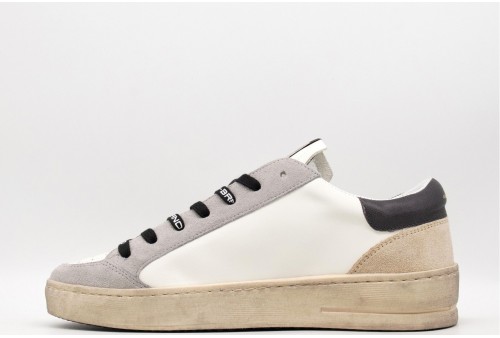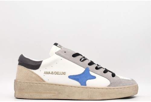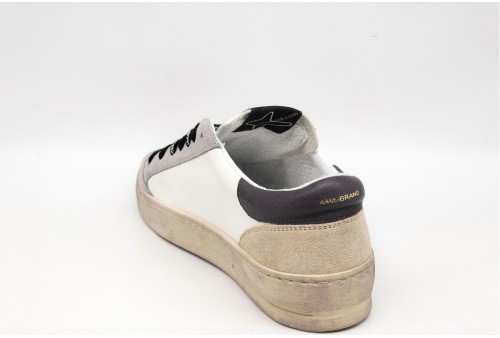 AMA BRAND SNEAKER 4073. Sneakers uomo realizzate in pelle bianca con dettagli in suede grigio e beige.  Lacci a contrasto. Logo stampato lateralmente. Etichetta con label logata. Talloncino in pelle nera. COLORE: BIANCO/grigio
