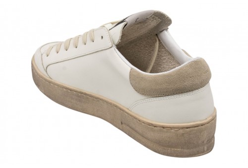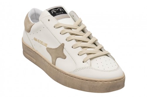 AMA BRAND uomo sneaker 4543 SLAM BIANCO. Sneaker low cut realizzata in pelle bianca con inserti in suede beige a contrasto. Spoiler in suede con logo. Linguetta con Label logata. Chiusura con stringhe.