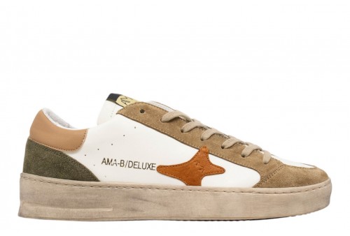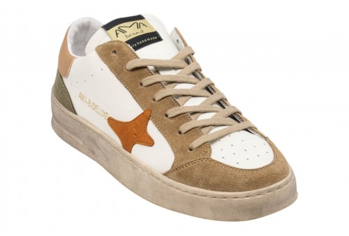 AMA BRAND uomo sneaker 4544 SLAM BIANCO. Sneaker low cut realizzata in pelle bianca con inserti in suede a contrasto. Spoiler in pelle con logo. Linguetta con Label logata. Chiusura con stringhe.