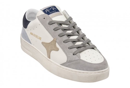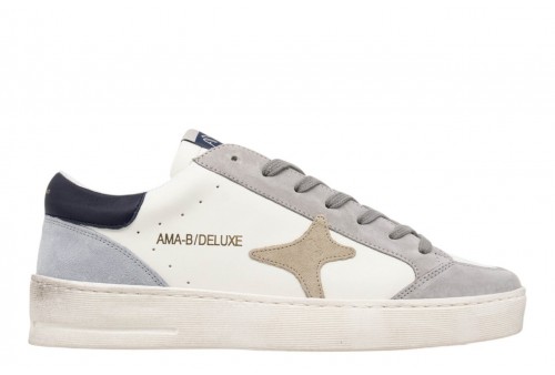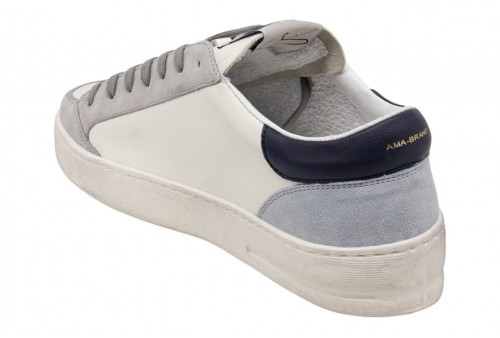 AMA BRAND uomo sneaker 4545 SLAM BIANCO. Sneaker low cut realizzata in pelle bianca con inserti in suede a contrasto. Spoiler in pelle con logo. Linguetta con Label logata. Chiusura con stringhe.