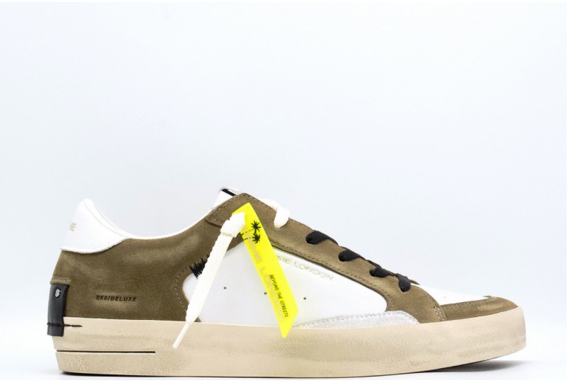 CRIME SNEAKER SK8 DELUXE GREEN GRIME. Sneaker realizzata con materiali di alta qualità Made in Italy. Tomaia in nabuck verde militare, dettagli in suede bianco
