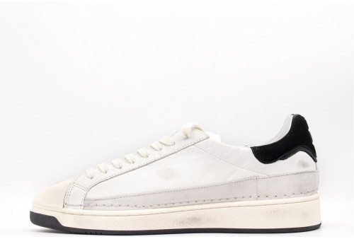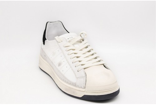 DATE BASE USED WHITE. Sneaker bassa in pelle effetto used colore bianco e dettaglio in suede colore grigio.