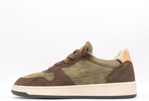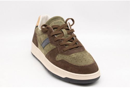 DATE COURT 2.0 POWDER ARMY. Sneaker bassa in suede colore verde militare con inserti in suede colore marrone.