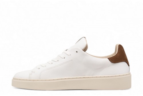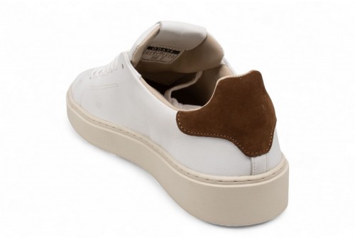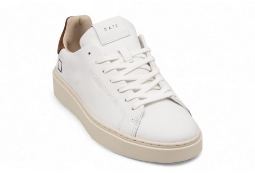 DATE LEVANTE CALF WHITE-BROWN. Sneakers bassa in pelle colore bianco.Sulla linguetta in pelle è cucita la label con scritta D.A.T.E. impressa.I lacci sono in cotone. Il nome del modello e il logo quadrato sono impressi lateralmente.Il talloncino posteriore è in nabuk colore marrone. Fodera in pelle e spugna di cotone.Il soletto interno è rialzato di 2.5 cm per un miglior comfort.La suola in gomma cucita è alta 2.5 - 4 cm.Tutti i materiali selezionati sono Made in Italy.