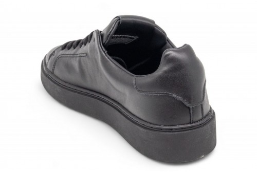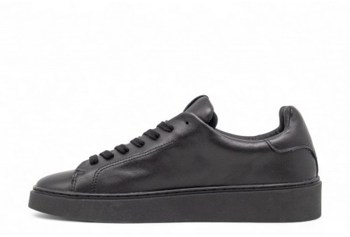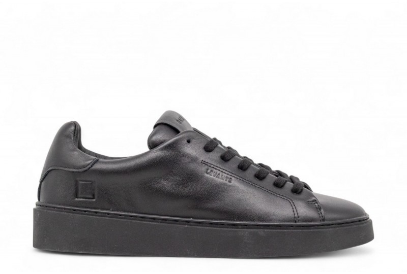 DATE LEVANTE MONO BLACK. Sneakers bassa in pelle nera.Sulla linguetta in pelle è cucita la label con scritta D.A.T.E. impressa.I lacci sono in cotone. Logo quadrato impresso lateralmente. Fodera in pelle e spugna di cotone.Il soletto interno è rialzato di 2.5 cm per un miglior comfort.La suola in gomma cucita è alta 2.5 - 4 cm.Tutti i materiali selezionati sono Made in Italy.