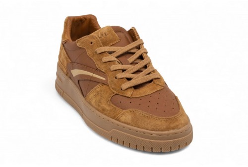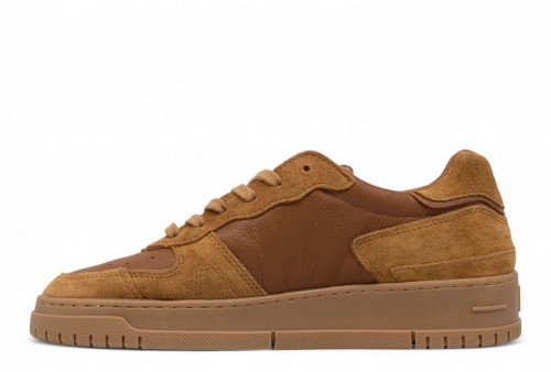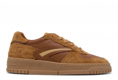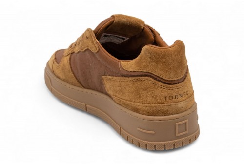 DATE TORNEO PURE NATURAL CUOIO. Sneakers bassa in suede e inserti in pelle color cuoio . La punta è traforata per una maggiore traspirazione. Sulla linguetta è cucita la patch con impressa la scritta D.A.T.E. I lacci sono in cotone e il logo quadrato è impresso lateralmente. Collare in suede tono su tono. Dettaglio laterale impresso. Nome del modello impresso posteriormente. Fodera in pelle e spugna di cotone. Il soletto interno è rialzato di 2.5 cm per un migliore comfort. La suola in gomma, alta 2.5 - 4 cm, è cucita.