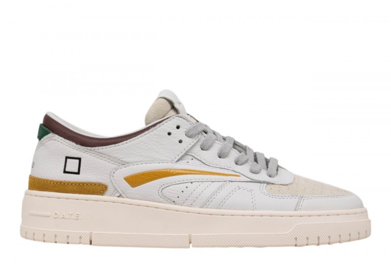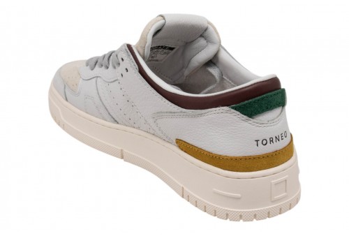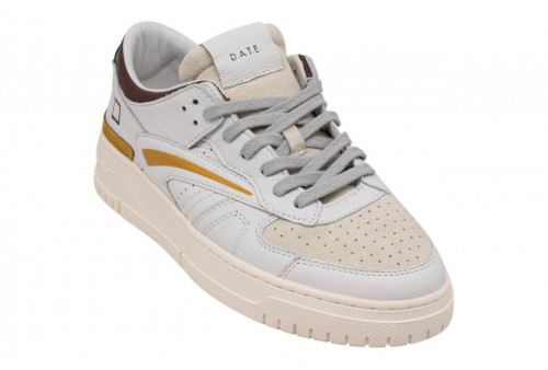 DATE uomo M441-TO-CO-WU TORNEO COL. WHITE-MUSTARD . Sneakers bassa in pelle pelle martellata colore bianco e suede colore avorio.