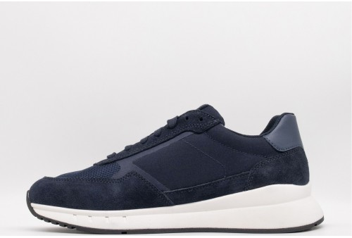 GEOX SNEAKER UOMO BRANTHON . Sneaker uomo d'ispirazione running e dal gusto metropolitano, che offre comfort e traspirabilità. Proposta in una versatile tonalità blu navy, sfoggia una tomaia in scamosciato con dettagli in tessuto. Ideale per aggiungere dinamismo agli outfit quotidiani, Branthon garantisce benessere al piede da mattina a sera.