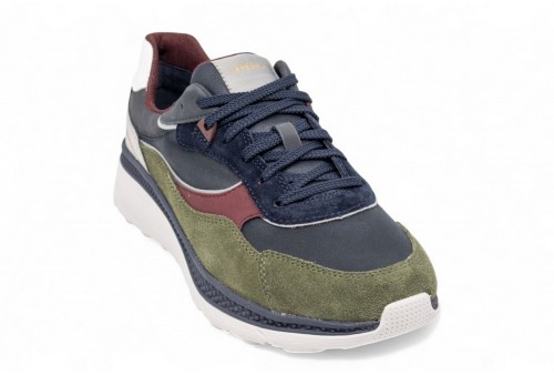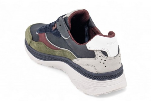 GEOX spherica actif x1.Sneaker uomo che assicura eccellente ammortizzazione e un effetto extra rimbalzo ad ogni passo, per affrontare con dinamismo le intense giornate urbane. Realizzata in tessuto cerato con inserti in materiale scamosciato, si presenta in questa variante che combina blu navy e verde muschio per un look contemporaneo. Spherica™ Actif X1 è la scelta ideale per chi cerca energia e comfort senza rinunciare allo stile urbano durante le lunghe camminate in città.Ammortizzazione potenziata, grazie allo Zero Shock System. Sottopiede estraibile.colore: navy