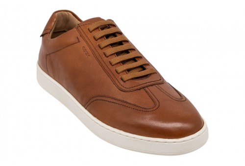 GEOX Uomo REGIO U65CHB00043C6001 COGNAC. Sneaker uomo dal design pulito ed essenziale, che garantisce traspirabilità e comfort. In questa raffinata variante cognac, ha una tomaia in pelle liscia che coniuga gusto ricercato e mood contemporaneo. Regio è perfetta per completare i look cittadini, dal lavoro al tempo libero.