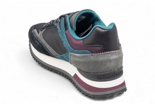HARMONT E BLAINE SNEAKER UOMO.Sneaker modello running con mix di suede e tessuto tecnico, patch posteriore in pelle di vitello a contrasto abbinato allo spoiler in gomma. Cuciture a zig-zag e logo stampato in giochi di colori. Plantare tecnico in lycra e schiuma ergonomica. Suola con battistrada in gomma, intersuola tricolore in EVA e spoiler colorato con logo script.COLORE: nero