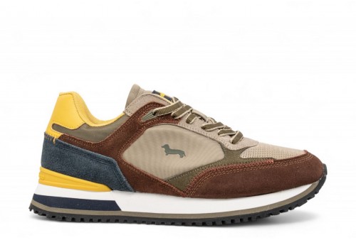 HARMONT E BLAINE SNEAKER UOMO.Sneaker modello running con mix di suede e tessuto tecnico, patch posteriore in pelle di vitello a contrasto abbinato allo spoiler in gomma. Cuciture a zig-zag e logo stampato in giochi di colori. Plantare tecnico in lycra e schiuma ergonomica. Suola con battistrada in gomma, intersuola tricolore in EVA e spoiler colorato con logo script.COLORE: marrone