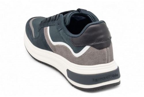 HARMONT E BLAINE SNEAKER UOMO.Sneaker in mix di suede e tessuto tecnico con applicazioni termo-saldate in gomma. Patch posteriore in pelle di vitello a contrasto con doppia cucitura. Logo tonale in gomma ad alta frequenza sul lato. Footbed tecnico in lycra e schiuma ergonomica. Suola con battistrada in gomma, intersuola in phylon e spoiler colorato con logo script.COLORE: BLU