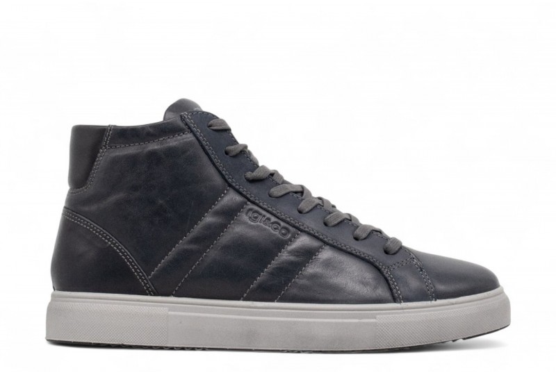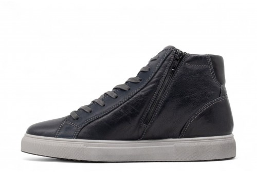 IGI CO SNEAKERS ALTE IN PELLE. Queste sneakers alte da uomo in pelle effetto vintage sono versatili e perfette per valorizzare gli outfit casual di ogni giorno. Colletto imbottito. Zip interna per facilitarne la calzata. Il plantare estraibile in memory foam è rivestito in pelle e assicura ammortizzazione proteggendo il piede dalle sollecitazioni. COLORE: RAG/NOTTE