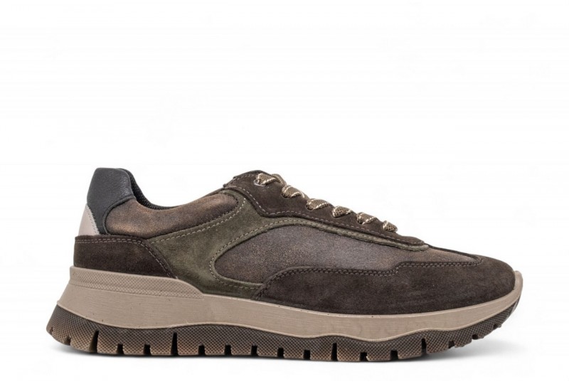 IGI E CO SNEAKERS IN CAMOSCIO. Queste sneakers da uomo in pelle scamosciata caffe con inserti verdone sono versatili e perfette per valorizzare gli outfit casual di ogni giorno. Spoiler a contrasto. Plantare estraibile in memory foam rivestito in pelle. COLORE: caffe