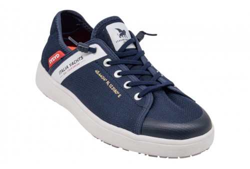 ITALIA YACHTS sneaker STP25-27 VENTO NAVY. Sneaker slip on uomo realizzata in tessuto. Logo 'Italia Yachts' su linguetta e al lato.