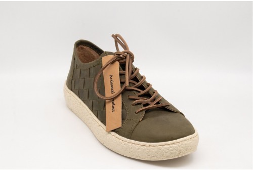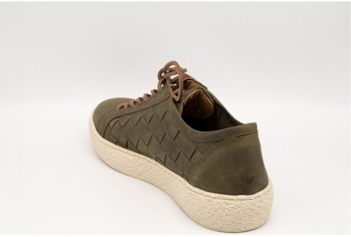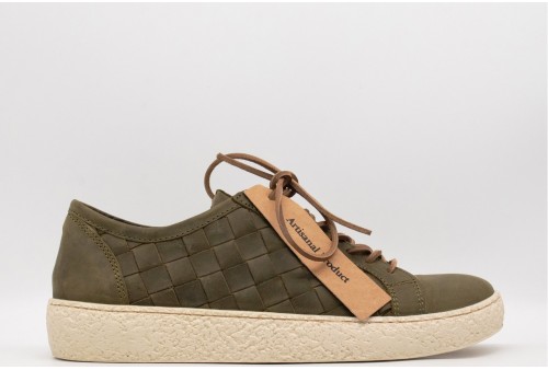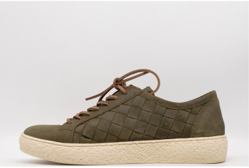 KJORE PROJECT SNEAKERS INTRECCIATA. La Fær Øer Bold Woven di Kjøre Project è una scarpa sportiva di alta qualità. Costruzione artigianale. Realizzata in un nuovo tessuto audace. Pelle neozelandese di Kjøre Project. Suole in EVA (Etil vinil acetato) ecologico. Fodera in morbida pelle. La manifattura di questo prodotto è stata realizzata con procedimenti artigianali e non industriali. Piccole imperfezioni, avvallamenti , variazioni di tono ed increspature della superficie sono volutamente presenti costituendone specifica caratteristica del prodotto e ne testimoniano la speciale manifattura artigianale. Colore: OLIVE