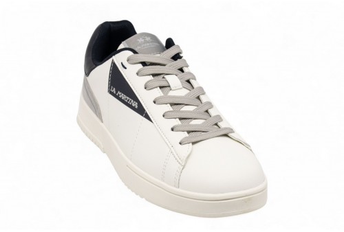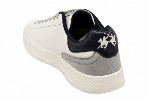 LA MARTINA SNEAKER UOMO.Sneaker in ecopelle. Patch posteriore a contrasto con logo. Logo sul lato.Suola con battistrada in gomma. COLORE: bianco/blu
