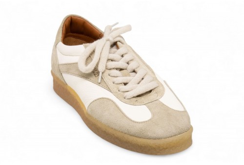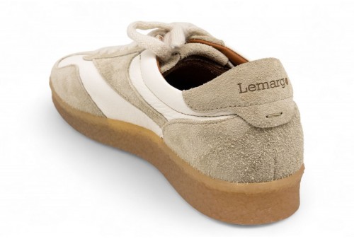 LEMARGO sneakers DUSTIN in suede. Sneakers in pelle scamosciata champagne e inserti in pelle bianca . Lacci tono su tono. Suola crepe in gomma naturale. Fodera in spugna. Spoiler con logo . Made in Italy. COLORE: champagne