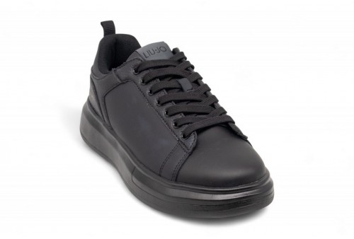 LIU JO SNEAKERS UOMO IN PELLE. Sneaker realizzata in pelle con cuciture tono su tono. Logo stampato al lato. COLORE: NERO