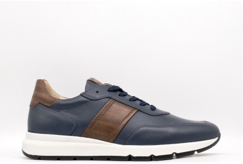 NERO GIARDINI SNEAKERS IN PELLE UOMO. Sneaker realizzata in pelle caratterizzata da banda laterale e talloncino in pelle a contrasto marrone. Il sottopiede con tecnologia DryGo!® assorbe l’umidità e garantisce confort e benessere. COLORE: INCANTO