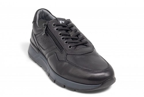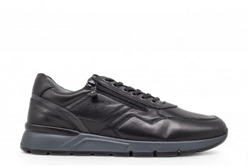NeroGiardini Sneakers Uomo in Pelle. Sneaker realizzata in pelle con cuciture tono su tono. Chiusura con zip e lacci. Fondo in gomma.La soletta in poliuretano DryGo!®, oltre alle capacità di assorbimento del sudore e di asciugatura rapida, che mantengono il piede asciutto in qualsiasi condizione climatica, offre anche l'innovativa funzione Memory ad elevato assorbimento degli urti, che si modella delicatamente al piede garantendo comfort e benessereCOLORE: nero