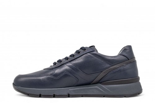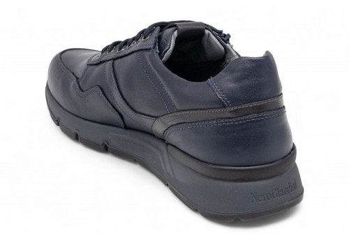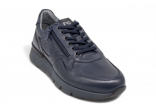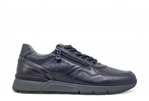 NeroGiardini Sneakers Uomo in Pelle. Sneaker realizzata in pelle con cuciture tono su tono. Chiusura con zip e lacci. Fondo in gomma.La soletta in poliuretano DryGo!®, oltre alle capacità di assorbimento del sudore e di asciugatura rapida, che mantengono il piede asciutto in qualsiasi condizione climatica, offre anche l'innovativa funzione Memory ad elevato assorbimento degli urti, che si modella delicatamente al piede garantendo comfort e benessere. COLORE: blu