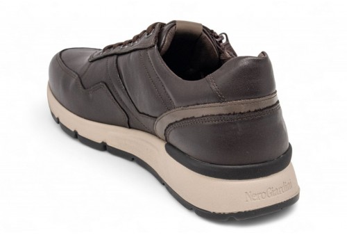 NeroGiardini Sneakers Uomo in Pelle.  Sneaker realizzata in pelle con cuciture tono su tono. Chiusura con zip e lacci. Fondo in gomma.La soletta in poliuretano DryGo!®, oltre alle capacità di assorbimento del sudore e di asciugatura rapida, che mantengono il piede asciutto in qualsiasi condizione climatica, offre anche l'innovativa funzione Memory ad elevato assorbimento degli urti, che si modella delicatamente al piede garantendo comfort e benessere. COLORE: brown