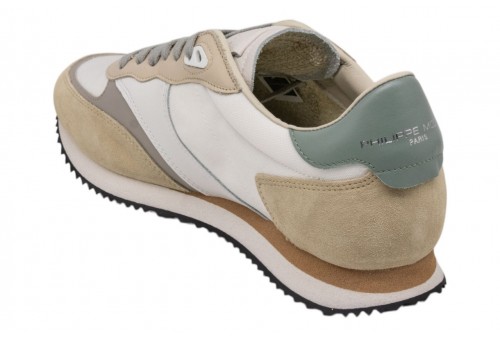 Sneaker running bassa con tomaia in tessuto tecnico, suede e inserti in pelle. Scudetto laterale cucito. Fodera in spugna di cotone e pelle con soletta imbottita estraibile. Fondo in gomma microporosa ultraleggera e bicolore.