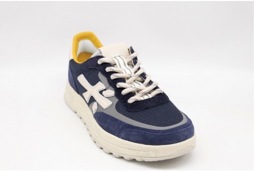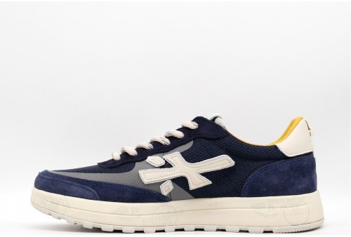 PREMIATA SNEAKERS NOUS. Dal perenne stato di ricerca, raffinatezza e innovazione di Premiata, nasce la nuova cassetta-running definita in un modello ordinato, efficace, incredibilmente performante dallo stile essenziale e tenace. Realizzata in pelle scamosciata e dettagli in tessuto. Talloncino in pelle biancoa Logo laterale e label logato sulla linguetta. COLORE: blu