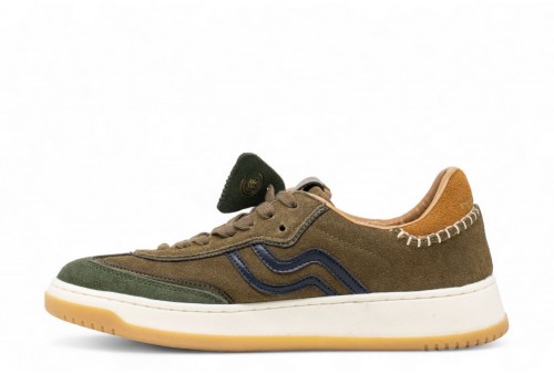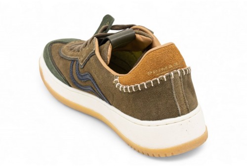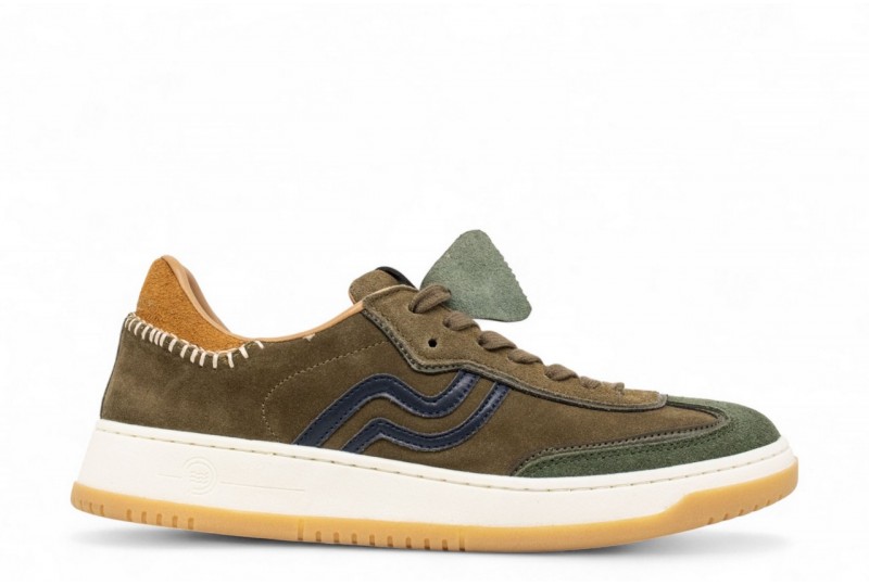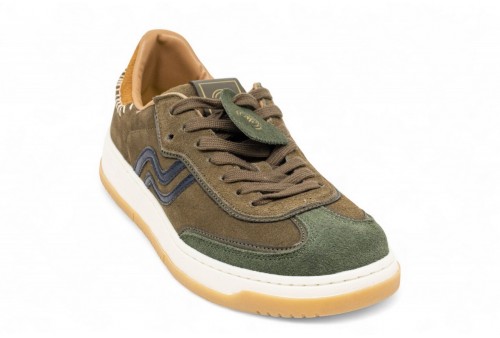 PRIMABASE SNEAKERS DUKE UOMO. Raffinate e versatili, queste sneakers uomo in suede blu navy sono la scelta ideale per chi cerca uno stile sportivo ma elegante. La tomaia in morbida pelle scamosciata è valorizzata da dettagli in pelle blu e tallone cuoio a contrasto, con cuciture a vista per un effetto artigianale. I lacci tono su tono, la fodera in pelle color cuoio e la suola in gomma naturale con intersuola bianca garantiscono comfort e durata.COLORE: VERDE