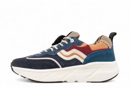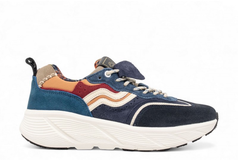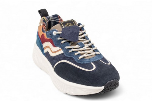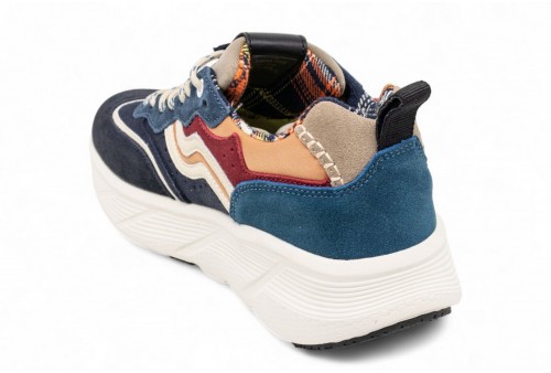 Primabase sneakers Fuji uomo. Scopri le sneakers Primabase Fuji da uomo, un perfetto mix di stile retrò e comfort moderno. Realizzate in pelle scamosciata beige con dettagli in pelle e inserti multicolore, queste scarpe si distinguono per il loro design dinamico e ricercato. La fodera interna in tessuto scozzese arancione dona un tocco originale, mentre la suola chunky in gomma assicura massimo comfort, accentuato dal fussbett in memory. Ideali per un look urbano, queste sneakers rappresentano la scelta perfetta per chi cerca uno stile casual con un tocco unico.Tirante posteriore in tessuto.COLORE: BLU